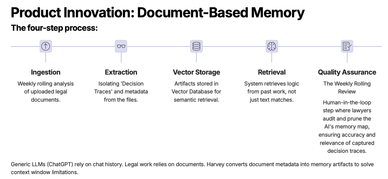 I spent this weekend breaking down Winston Weinberg's podcast and building an intelligence deck on Harvey's product strategy (links below). Most coverage focuses on growth metrics - 550 employees, massive funding, AmLaw 100 adoption. That misses the architecture.